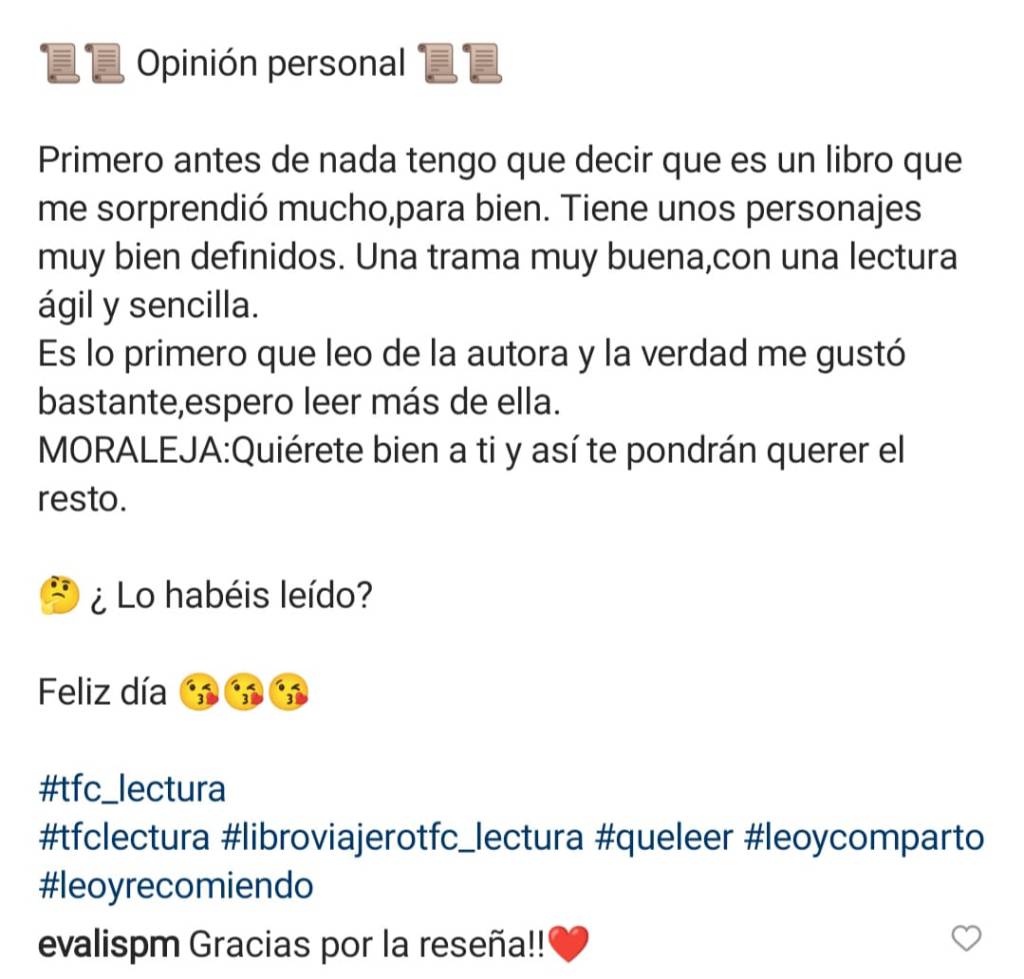 Cada vez que un lector me hace llegar un comentario sobre mi última novela «El brujo de mi madre» o de la bilogía «Mon Trésor» a través de redes sociales, hace que mis ganas e ilusión por seguir adelante escribiendo novelas que lleguen al corazón de mis lectores sean cada vez más grandes.